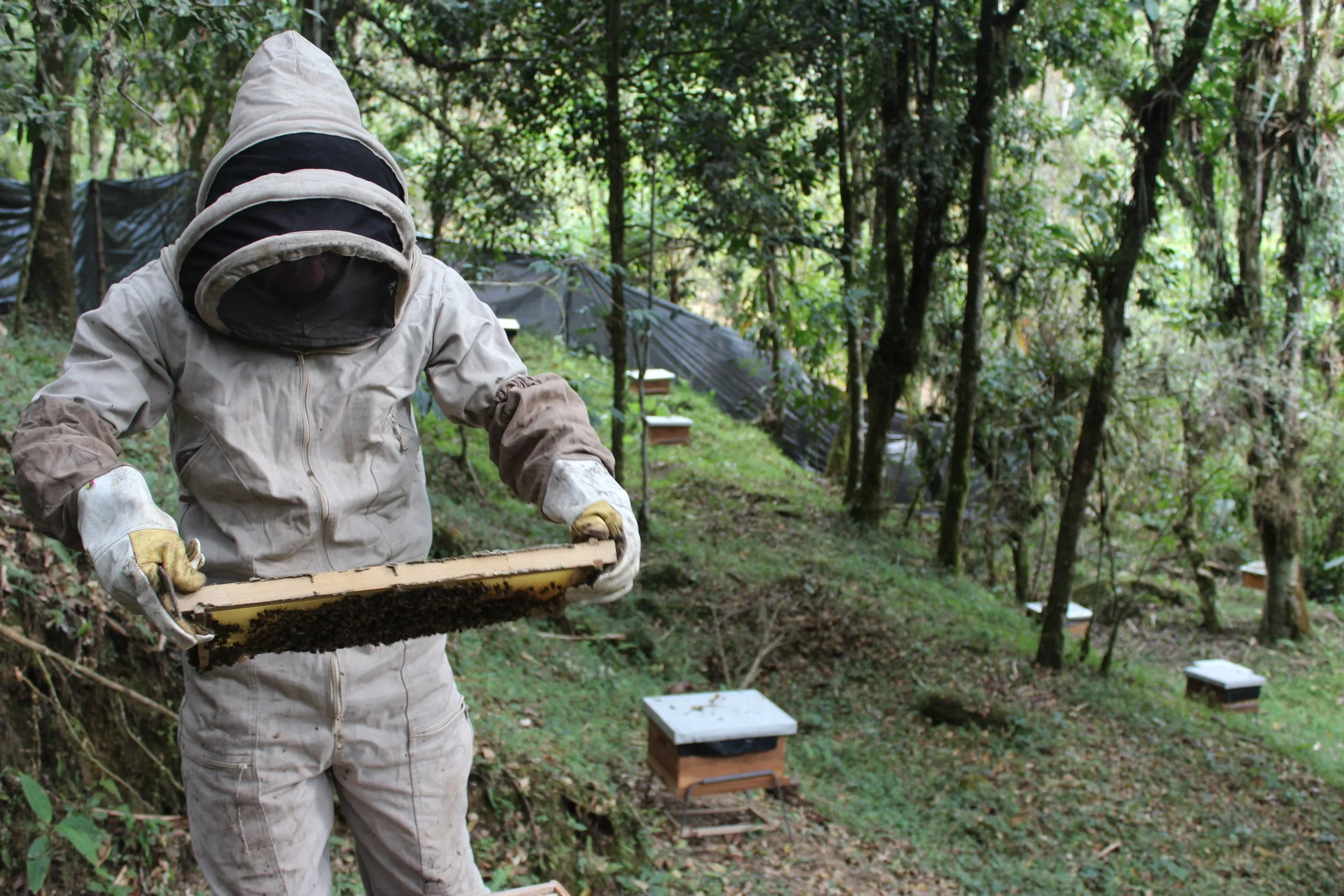 Es nuestro apiario más pequeño. Ubicado en las afueras de Cajicá, las colmenas fueron rescatadas de zonas urbanas y trasladadas a este lugar para su conservación.